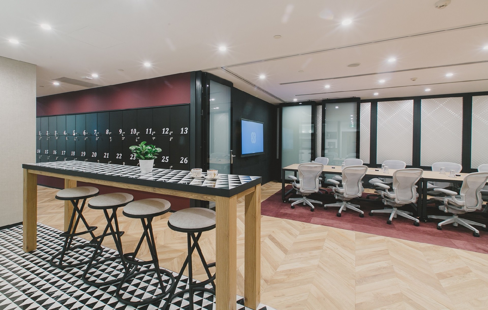 - 提供9AM自动升降办公室桌、Herman Miller人体工学椅,Interface地毯