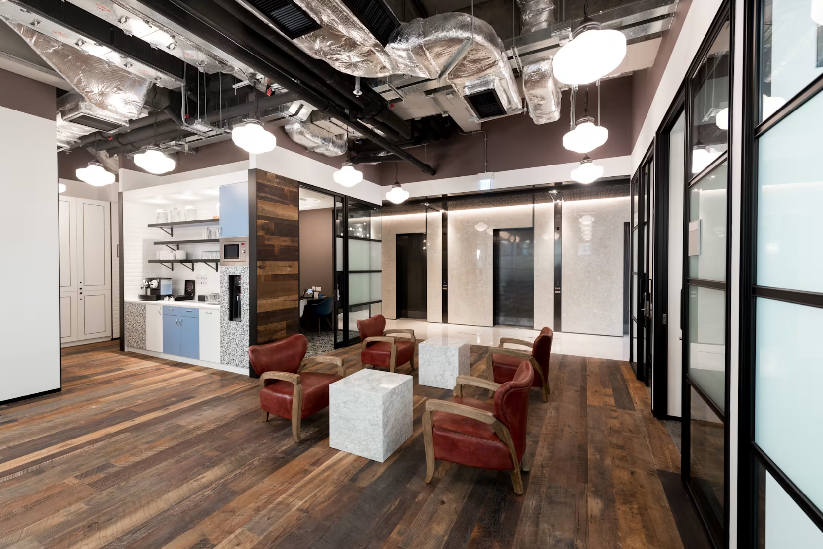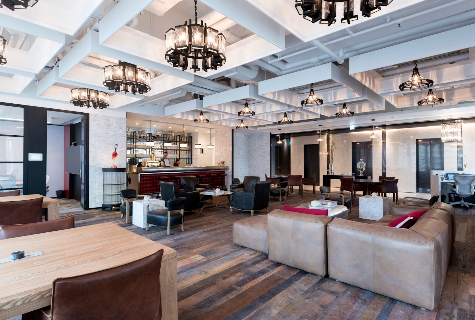 德事服务式办公室位于中环华懋中心二期 5-19 楼,提供灵活办公方案,结合开放式工位与共享办公区,打造极具吸引力的商务环境,满足企业多样化需求。