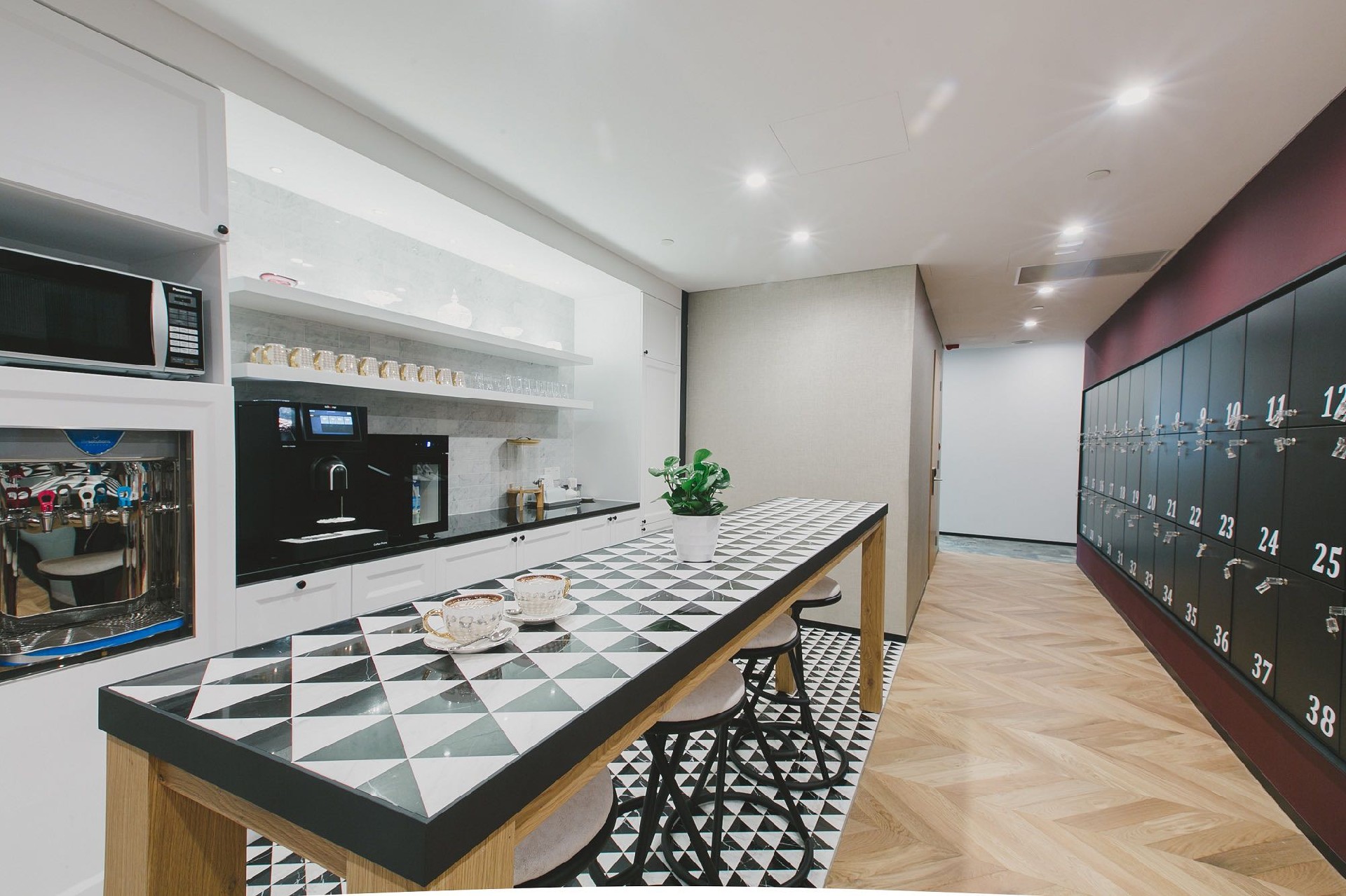- 休息区全天候免费供应咖啡、茶水、饮料