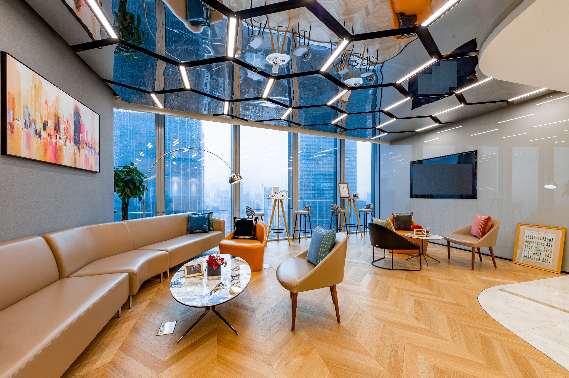 越洋广场服务式办公室致力为您打造沪上时髦人士与行业精英齐聚的社交空间,成为引领未来全球商业文化的先锋。